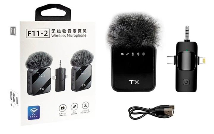 Бездротовий петличний мікрофон F11-2 з під'єднанням 3,5 мм, Type-C, Lightning