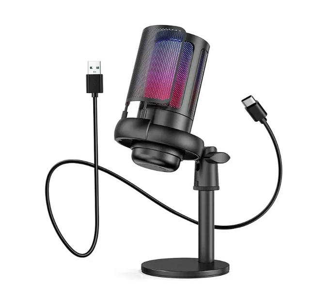 Мікрофон ME6S USB конденсаторний для ПК з RGB підсвічуванням