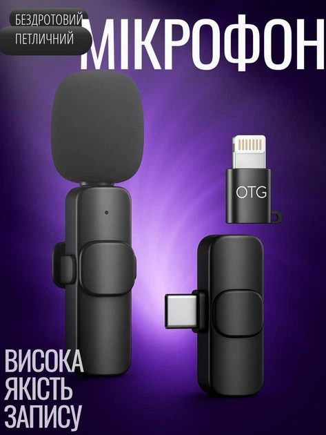 Бездротовий мікрофон петличний K9 Wireless Lavalier з адаптерами Lightning Type-C