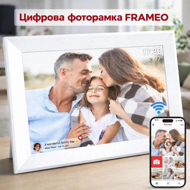 Цифрова фоторамка Frame Frameo 10.1 дюймів 32Gb вбудованої пам'яті WiFi електронна рамка для фото додаток FRAMEO із сенсорни