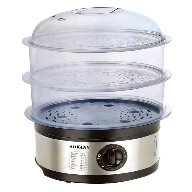 Пароварка електрична трирівнева Sokany SK-07018 11 літрів скороварка з таймером електропароварка