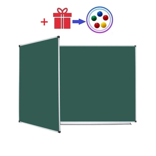 Шкільна дошка магнітна для крейди 3 поверхні 225х120 см HPL пластик FlipBoard. Подарунок: набір магнітів