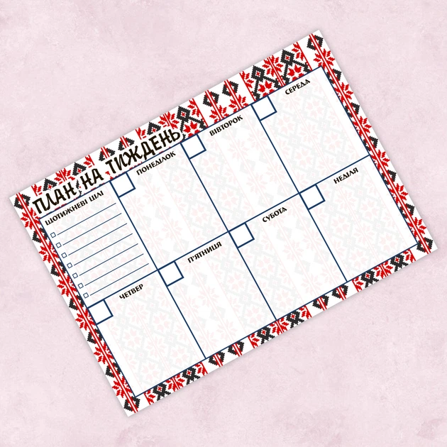 Планер магнітний на тиждень (український чорно-червоний орнамент) А4