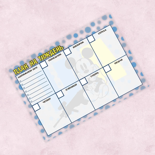 Планер магнітний на тиждень із патріотичним фоном (Міккі Маус зі зброєю) А4