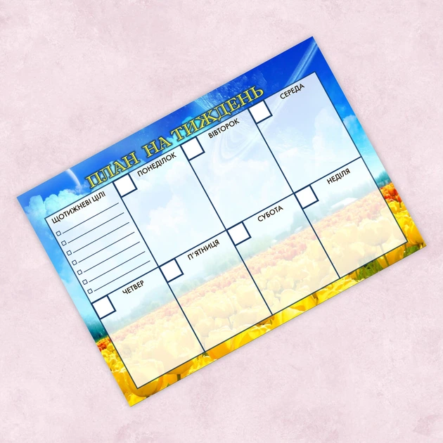 Планер магнітний на тиждень із патріотичним фоном (жовте поле з тюльпанами) А4