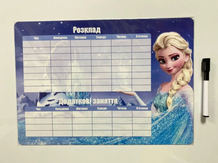 Магнітний планер "Розклад уроків та гуртки" А3 Ельза + маркер