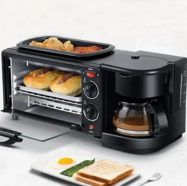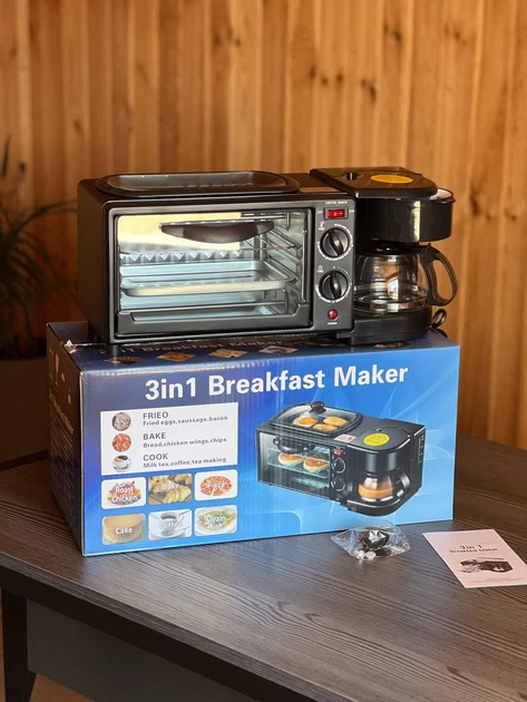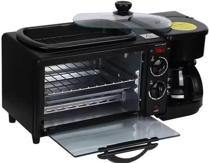 Електрична піч Bitek з кавоваркою та сковорідкою мультифункціональна піч для сніданків, випічки та гарячих напоїв 3в1 3600Вт