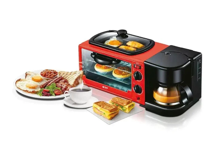 Електропіч багатофункціональна 3в1 BITEK BT-5308R 9 л, 3600 Вт, з кофеваркою на 4 чашки та антипригарною сковородою