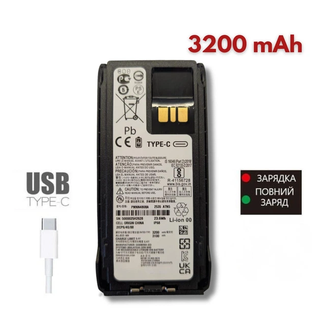 Акумулятор для Рації Motorola R7 R7A 3500 mAh з USB-C Батарея на Радіостанцію Моторолу Р7 Р7А PMNN4808A