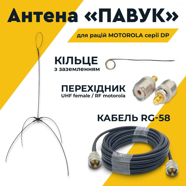 Універсальна антена “Павук” для рацій Motorola DP/R7 з кабелем 20 м та адаптером Motorola Bolt