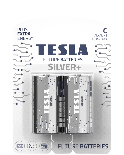 Батарейки, лужні, TESLA C SILVER+ LR14, ЦІНА ЗА 2ШТ(392370)
