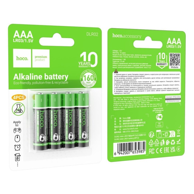 Батарейка Hoco AAA LR03 Alkaline 1.5V 4шт
