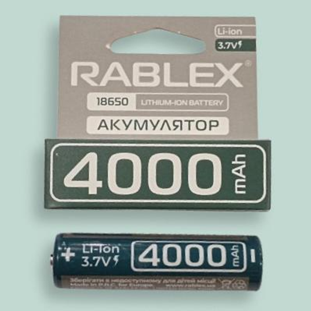 Акумулятор 18650 літій-іонний Rablex 4ОООmAh, З.7V