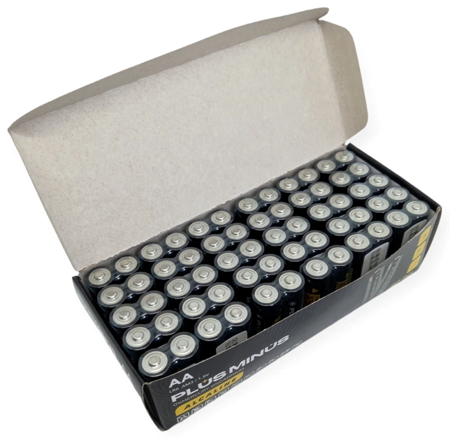 Батарейки щелочные пальчиковые большие АА LR06 Alcaline Алкалайн упаковка набор 60 штук Plus-Minus