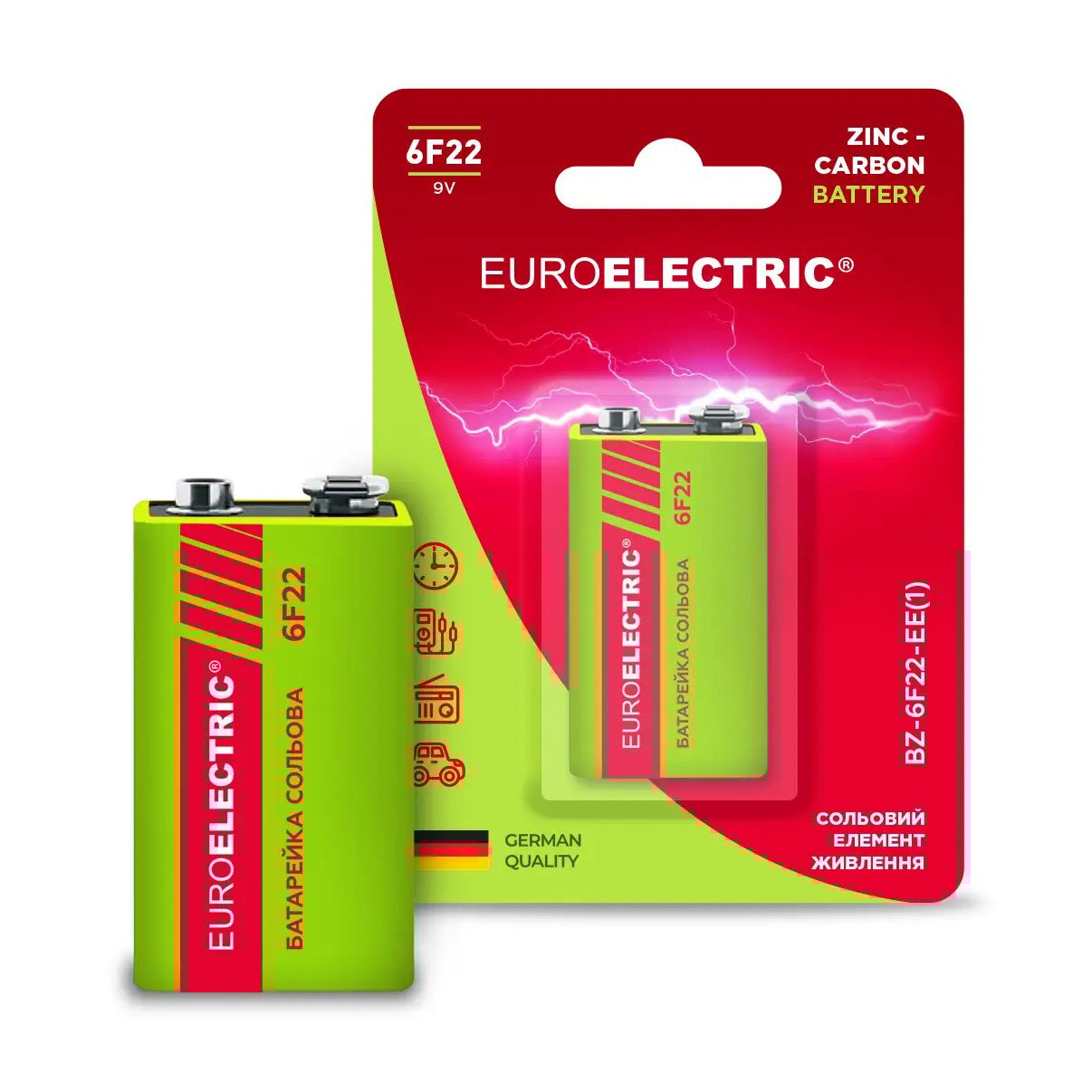 Сольова батарейка Euroelectric 6F22, 9V, 1 шт