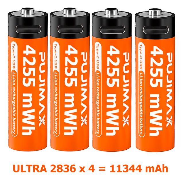 4 шт Li-Ion 1.5V AA акумулятор 4255mWh (2600 mAh) PUJIMAX EXTRIME USB-C 1500 циклів + кабель та кейс