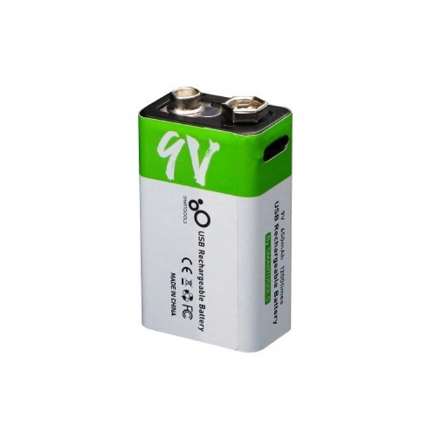 Акумулятор батарея 6F22, 6LR61 Крона з зарядкою USB TYPE-C (1200mAh, 9V) (162140)