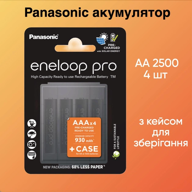 Panasonic Акумулятор Eneloop NI-MH Pro AA 2500 4 шт з кейсом для зберігання