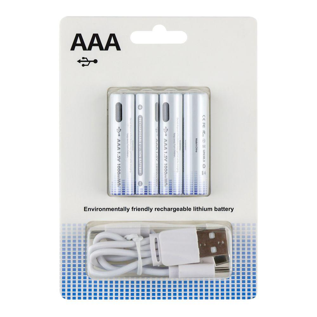 Акумуляторні батарейки AAA 1000mAh 1.5V з роз`ємом Type-C для зарядки 4шт, White