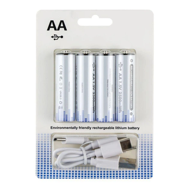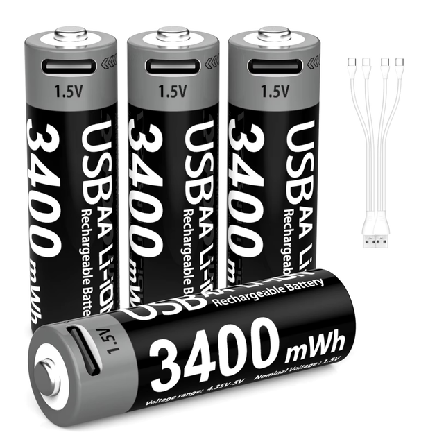 Акумуляторні батарейки 1,5 В USB AA з кабелем Micro USB, ємністю 3300 мВт·год, упаковка з 4 шт.