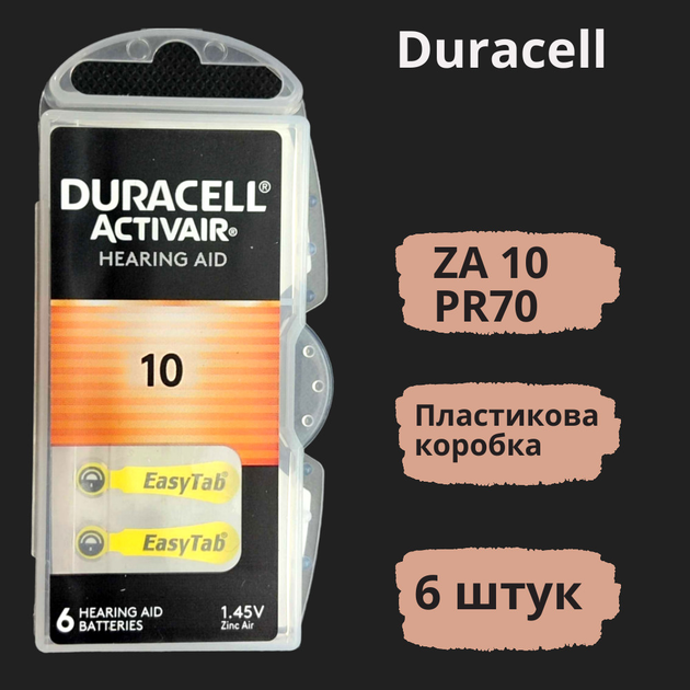 Батарейка Duracell ZA10 (PR70) 6 штук, для слухових апаратів