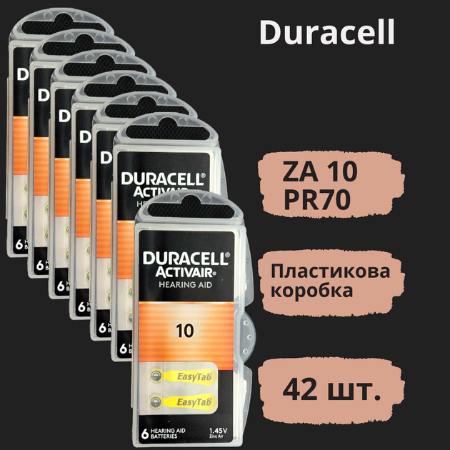 Батарейка Duracell ZA10 (PR70) -42 штуки, для слухових апаратів