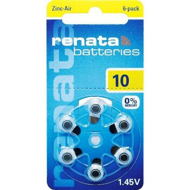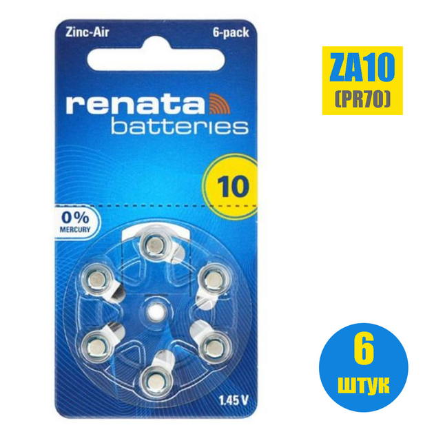 Батарейка Renata ZA10 (PR70) 6 штук, для слухових апаратів