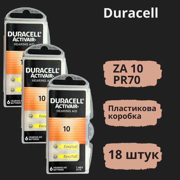 Батарейка Duracell ZA10 (PR70) 18 штук, для слухових апаратів