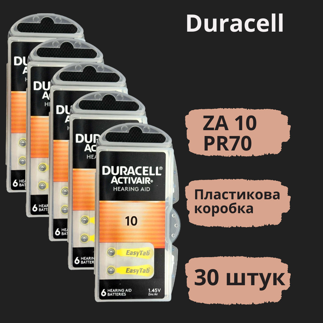Батарейка Duracell ZA10 (PR70) 30 штук, для слухових апаратів