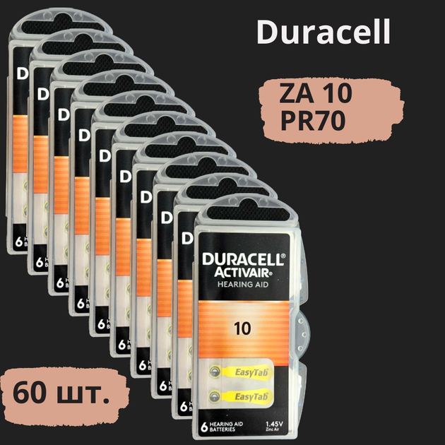 Батарейка Duracell ZA10 (PR70) - 60 штук, для слухових апаратів