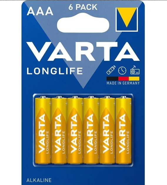Батарейка Varta AAA Longlife 4103 (LR03) MN2400 1.5V B6 Alkaline, 6шт