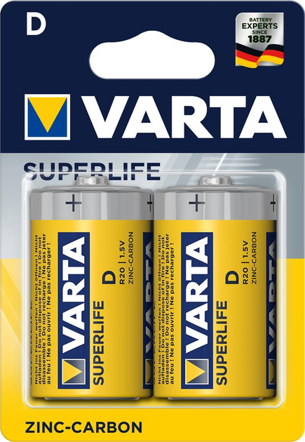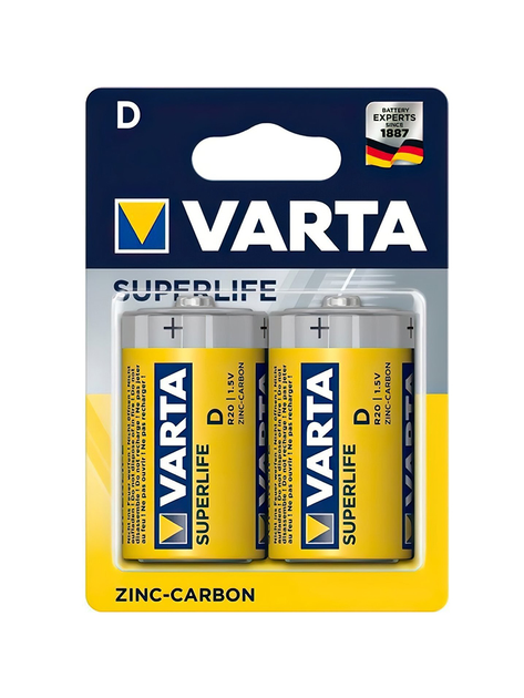 Батарейка вугільно-цинкова Varta SUPERLIFE D ємність 18000 мАг, напруга 1.5В BLI 2шт