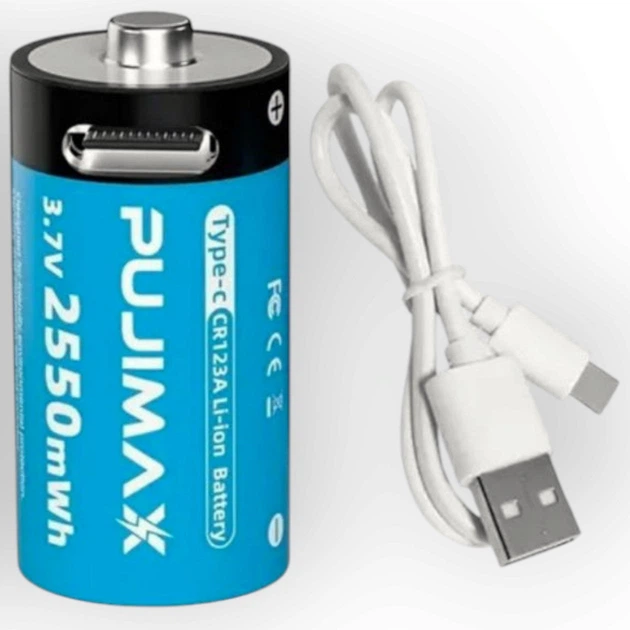 Батарейка акумулятор літій іонний Pujimax USB Li-ion CR123A 3.7V 800 mAh з кабелем Type-C для заряджання