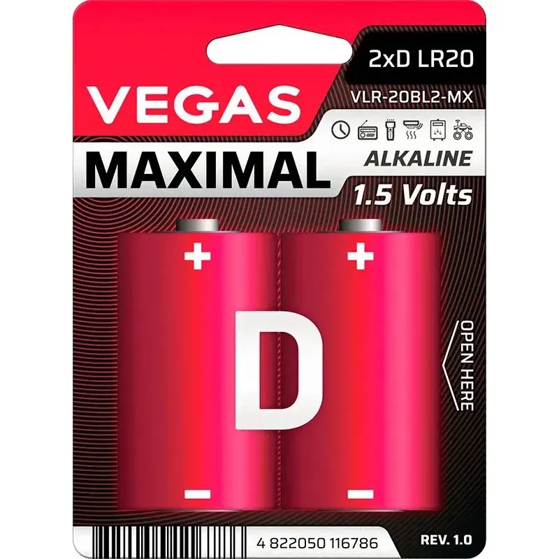 Первинний елемент живлення Vegas Maximal D Alkaline 2 шт. (VLR-20BL2-MX)