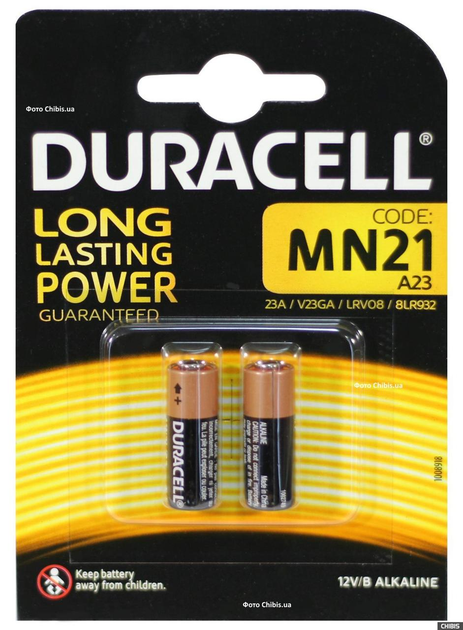 Батарейка Спеціалізована лужна батарейка Duracell MN21 12V, (A23 / 23A / V23GA / LRV08 / 8LR932) 2 шт (2 шт.)