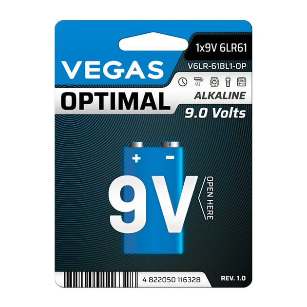 Батарейки Vegas Optimal Alkaline V6LR-61BL1-O 9V 1 шт