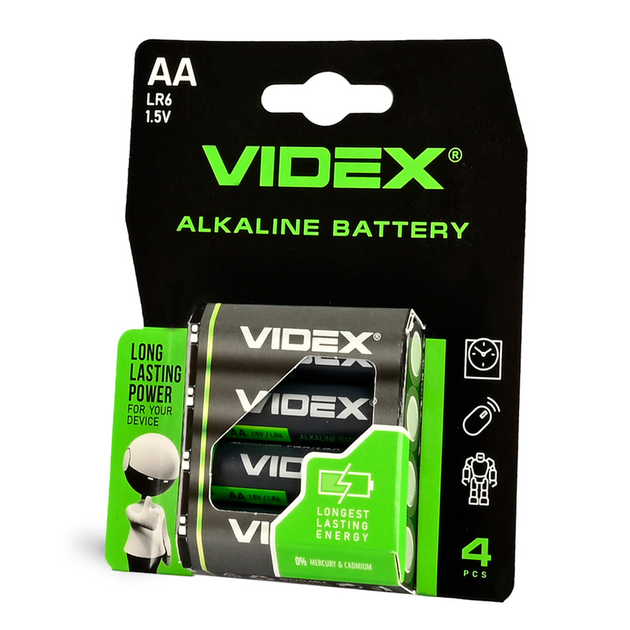Батарейки пальчикові Videx LR6 AAx4 Alkaline, типу АА, 4 штуки (Videx LR6 AAx4-RT)