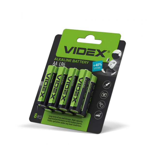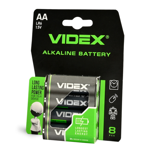 Батарейки пальчикові лужна Videx LR6/AA 8шт BLISTER (LR6/AA 8pcs BC)