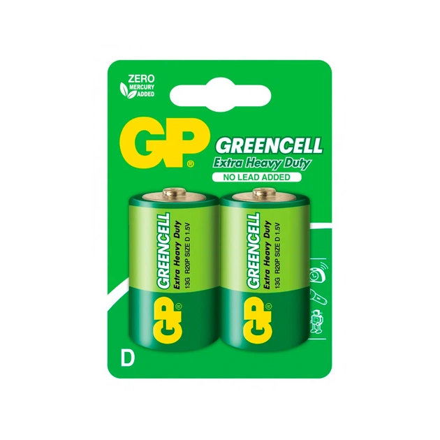 Батарейки GP Greencell 13G-S2, R20, D, 1.5V