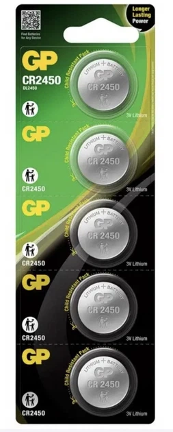 Батарейка дискова GP CR 2450 3V Lithium 5 шт.
