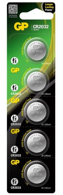 Батарейка літієва GP CR2032-U5, 3V, блістер 5шт розривний