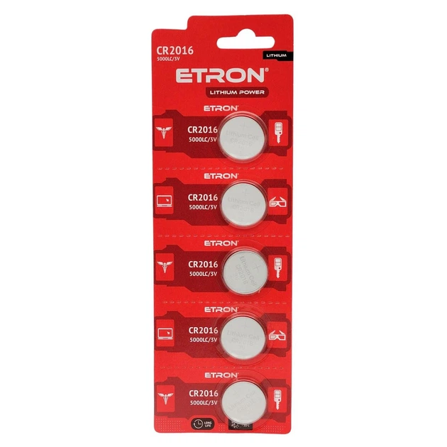 Батарейки ETRON CR2016 Lithium Power 5 шт.
