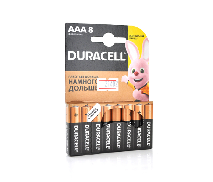 Батарейка лужна DURACELL LR03 (ААА) MN2400, 8шт у блістері, ціна за блістер