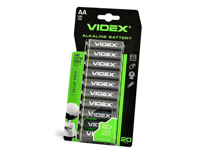 Батарейка лужна LR6/AA 20pcs Carton BLISTER Videx