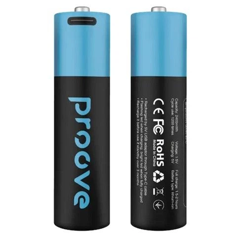 Акумулятори Proove Compact Energy AA 2400 mWh / 1600 mAh, 1.5 В, 2 шт – літій-іонні, до 1200 циклів, USB-зарядка