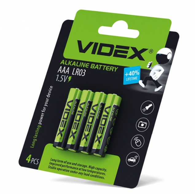Батарейка лужна ААА/LR03 (бл-4шт) Videx