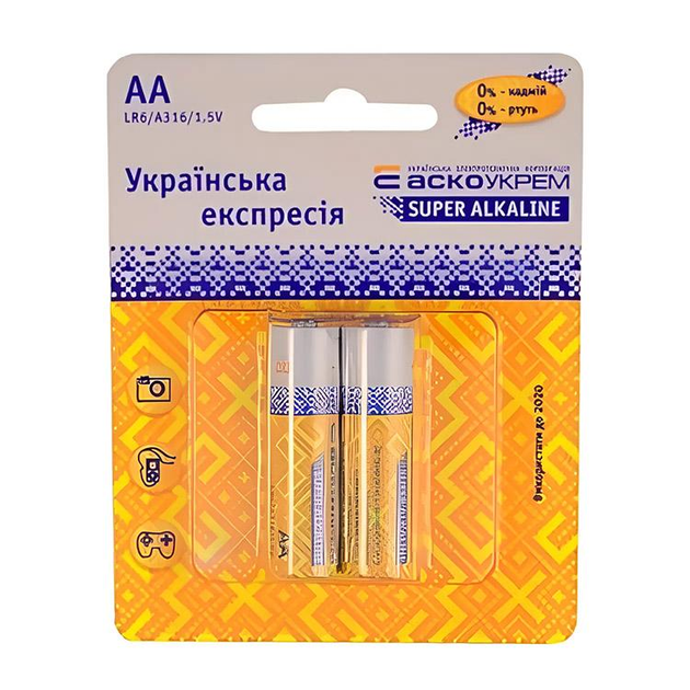 Батарейка лужна АА, LR6 1,5В (блістер 2 шт) АскоУкрем