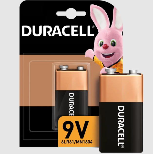 Батарейка крона Duracell Basic + 40 Alkaline Battery 9V. Алкалінова батарея. Елемент живлення крона 6LR61
