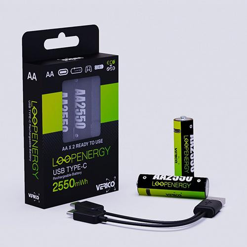 Акумулятор Verico AA USB Type-C 1700mAh 1.5V Li-ion * 2 (LoopEnergy) (1UDBT-A1WEA2-NN) 1UDBT-A1WEA2-NN