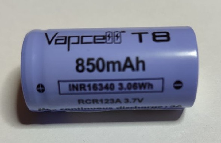 Акумулятор Vapcell INR16340 RCR123 850 mAh 3 А Li-ION без захисту